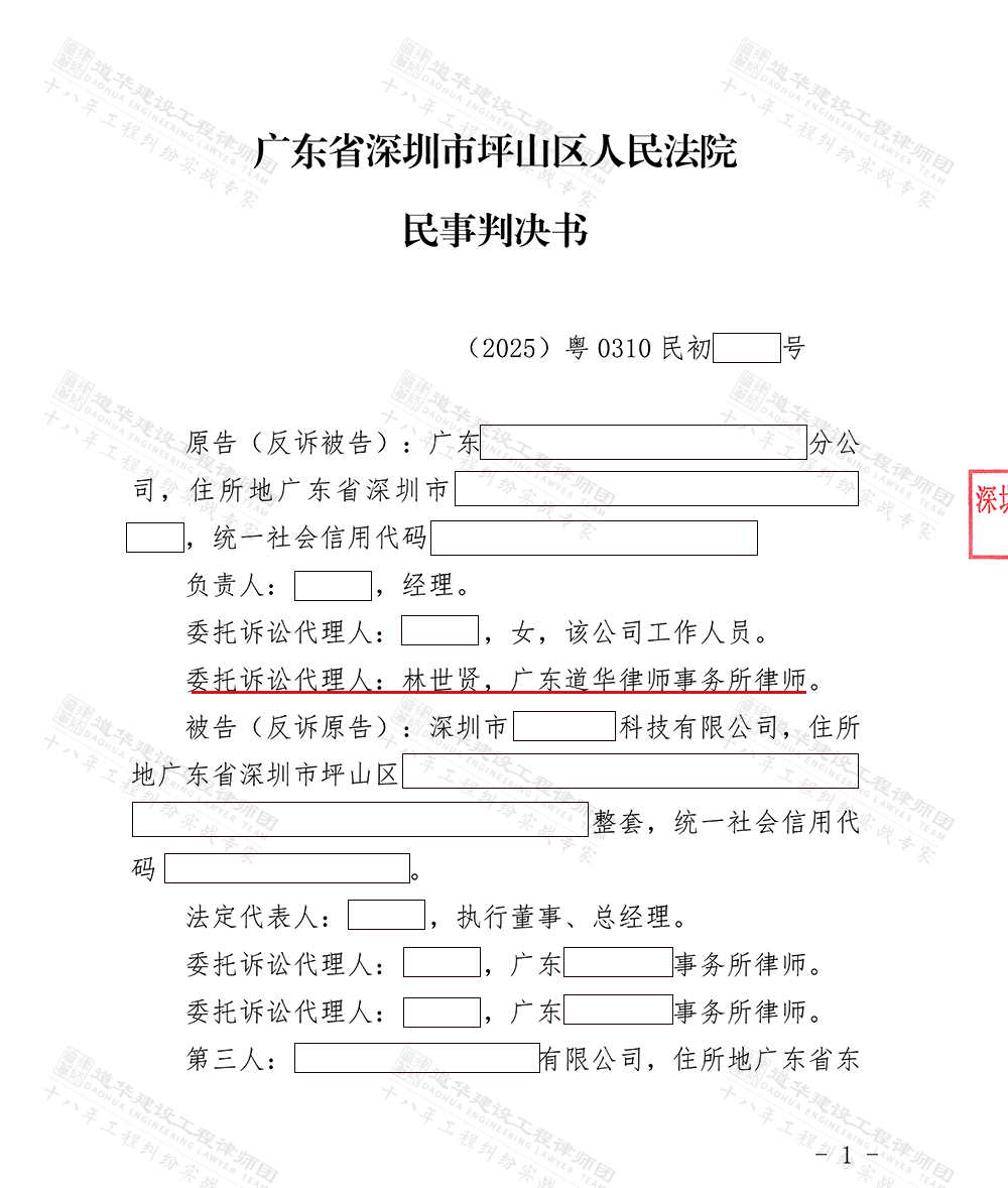 道华工程·胜诉捷报 | 道华律师代理分包方成功追回损失,并获违约赔偿!2025-11-28