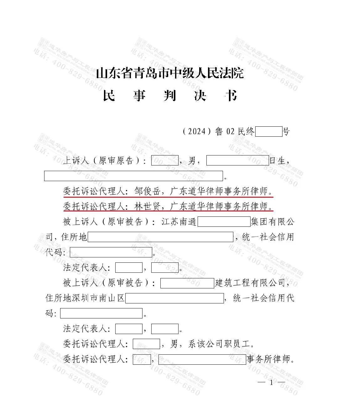 道华成功案例|山东青岛装修工程,国企总包十年不结算,邹俊岳律师二审成功改判,全面胜诉,追回工程款970万元2025-11-20