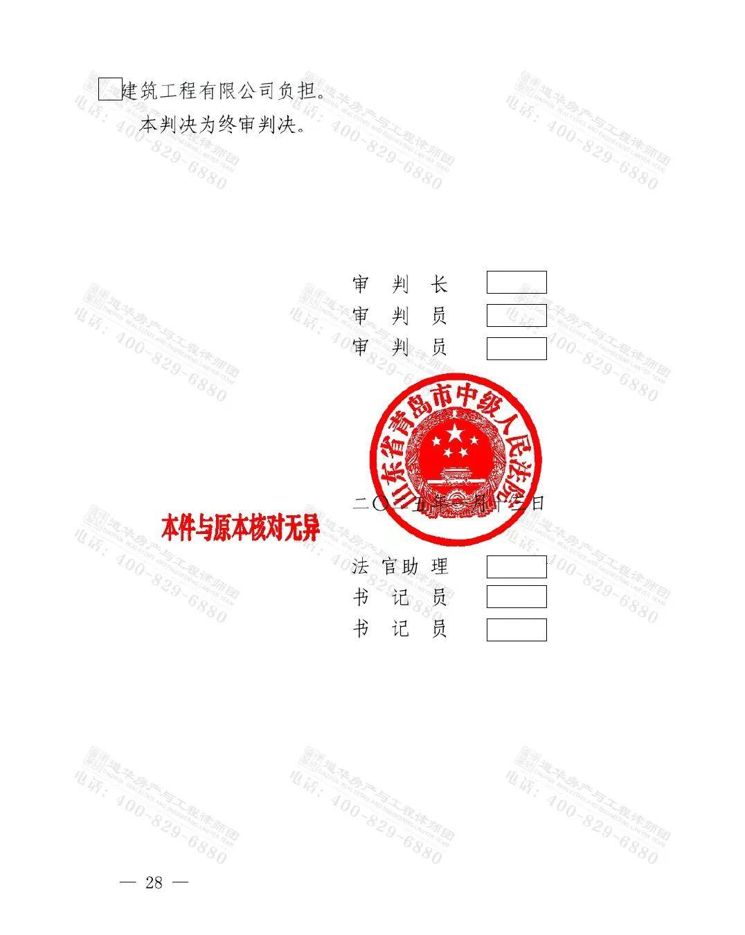 道华成功案例|山东青岛装修工程,国企总包十年不结算,邹俊岳律师二审成功改判,全面胜诉,追回工程款970万元