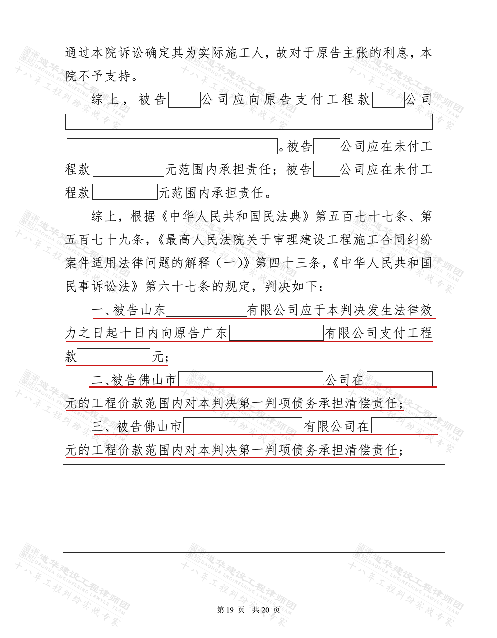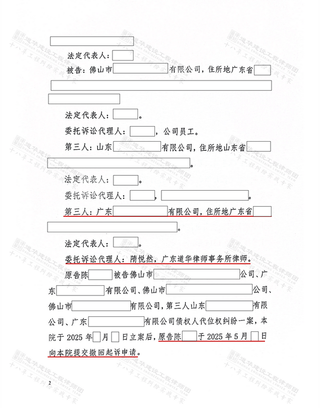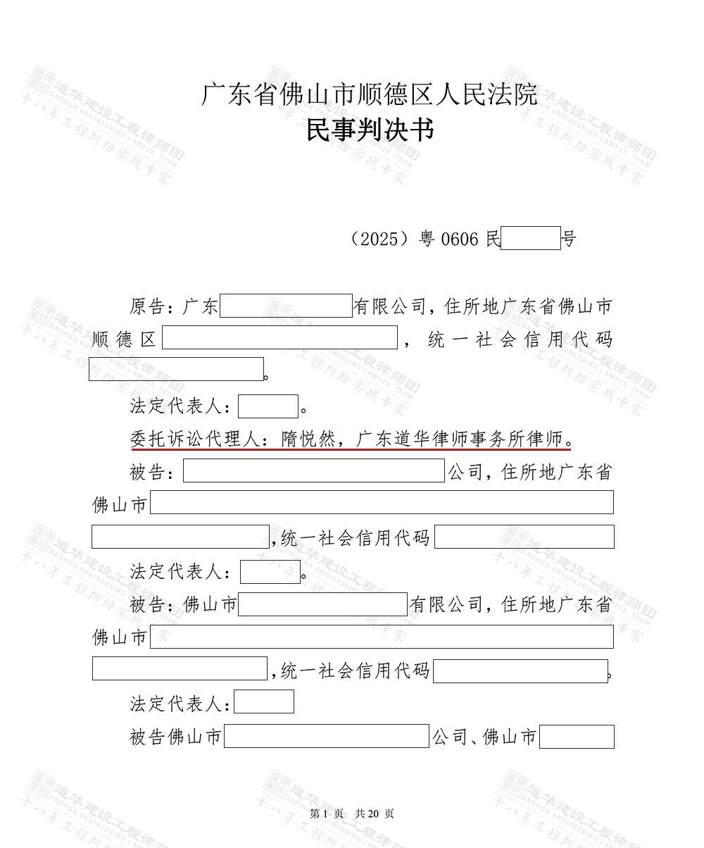 道华成功案例 | 道华律师代理佛山实际施工人向总包、业主追讨工程款胜诉!法院判决:总包、业主支付工程款!2025-11-28