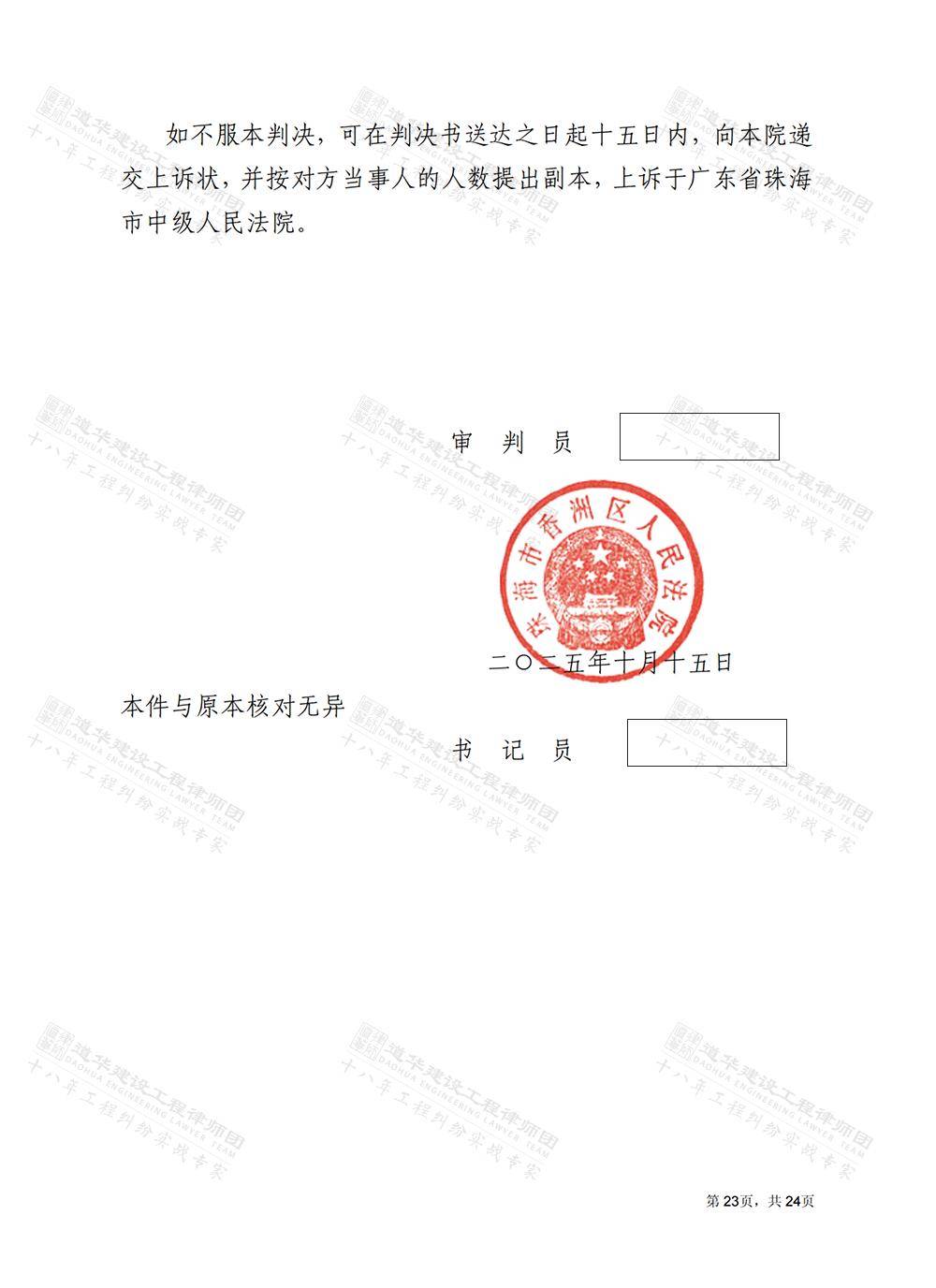 珠海市香洲区人民法院最终采纳道华律师全部代理意见,判决: