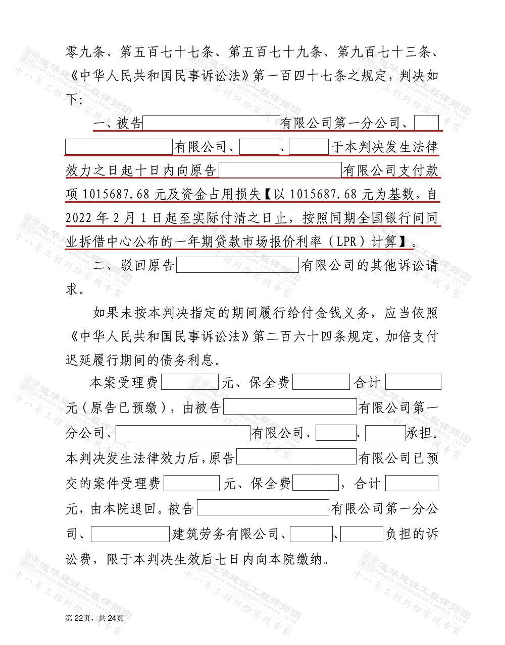 导语:珠海某小区水电安装工程合作项目中,委托人累计投入超100万元资金后,合作方收取工程款却拒不返还。广东道华律师事务所邹俊岳工程律师团介入后,精准梳理六方主体复杂法律关系,厘清混合款项性质,固定关键证据链,通过诉讼途径成功推动法院判决,最终为委托人追回全部本金1015687 68元及自2022年2月1日起计算的资金占用损失,该案例为建设工程领域疑难复杂纠纷类型,道华工程律师提供了极具参考价值的经典案例。一、法院