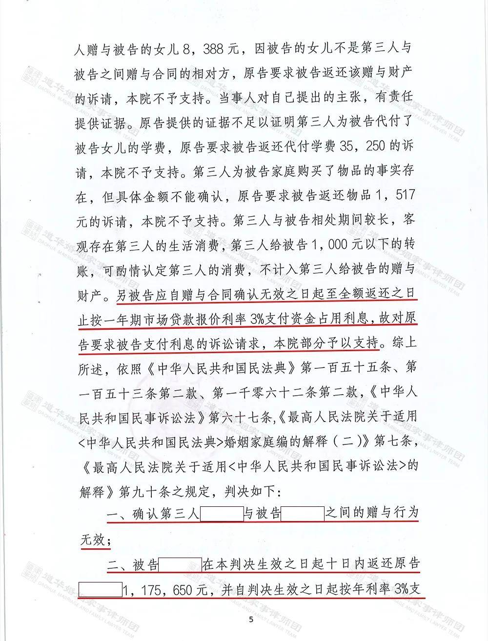 道华成功案例| 赠与合同无效纠纷:丈夫婚内赠第三者百万财产,广东道华律师事务所唐云虹律师助力原配追回117万元及利息!